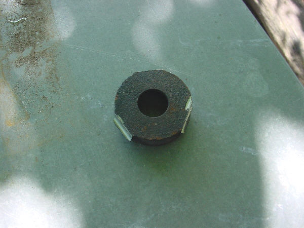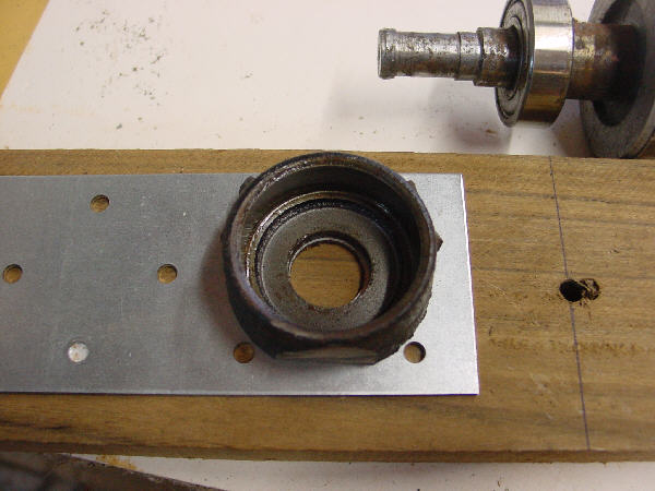 Motorens 2 ender blev snittet med en vinkelsliber - og resultatet ses til venstre - en færdig lejeskål !